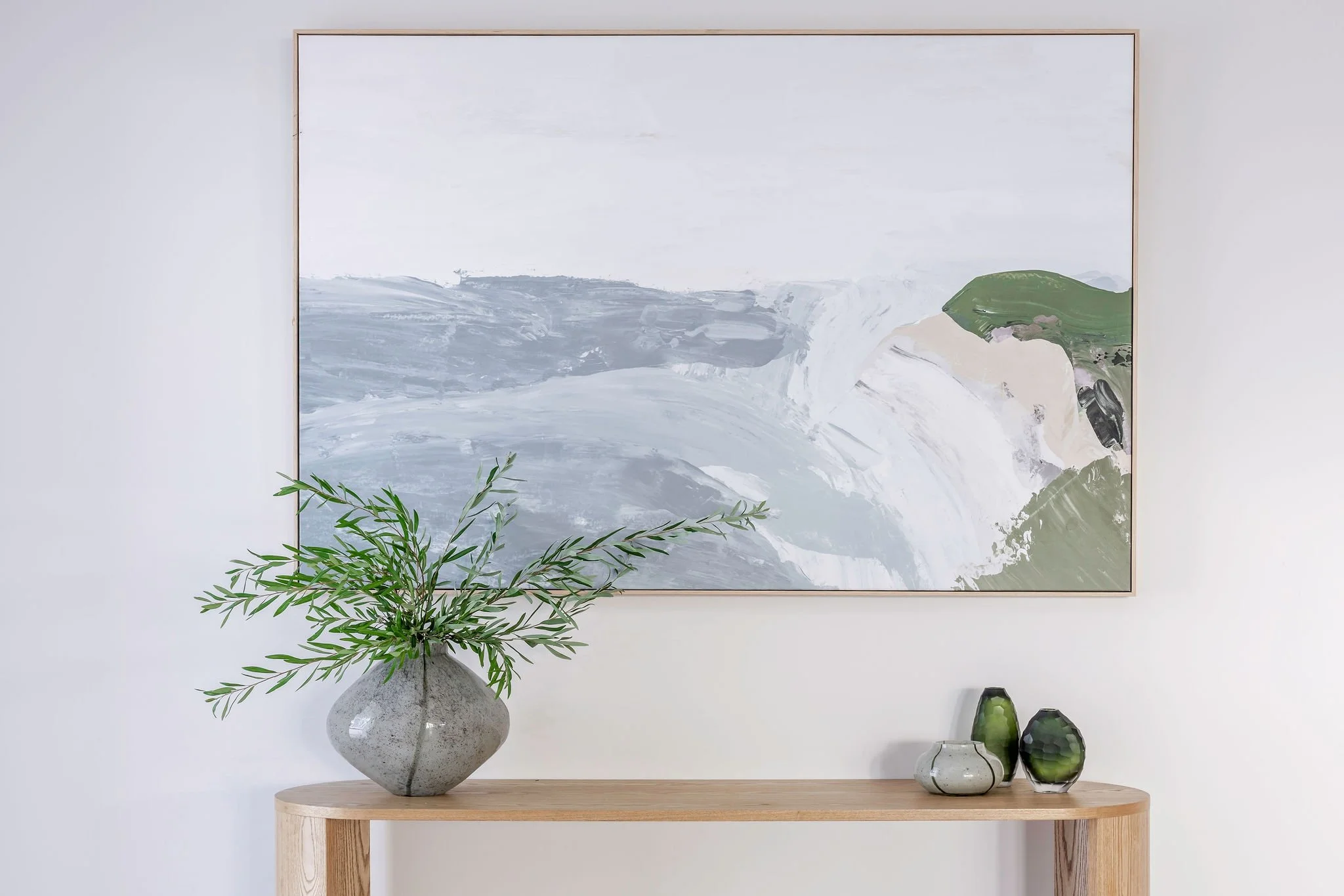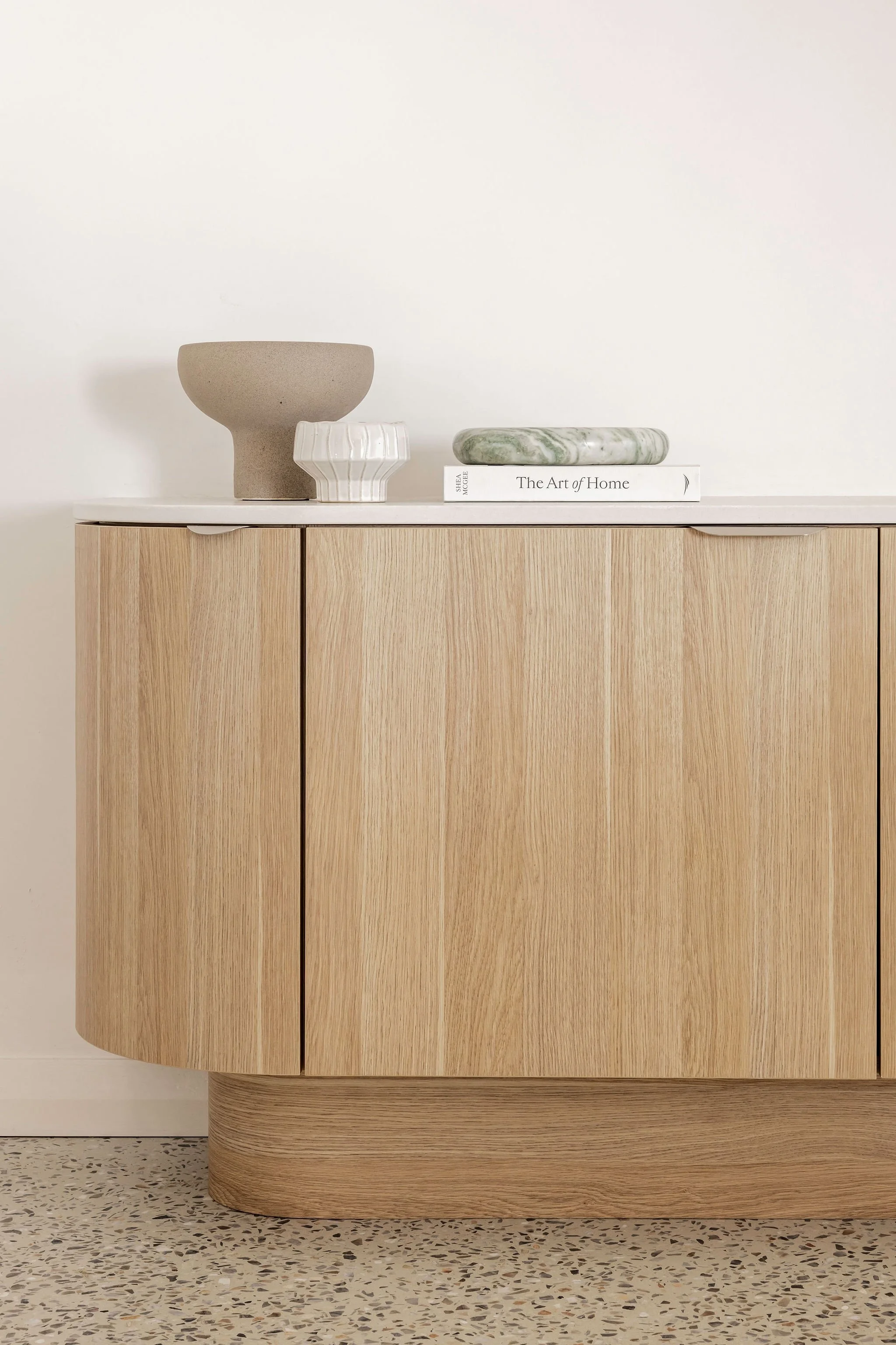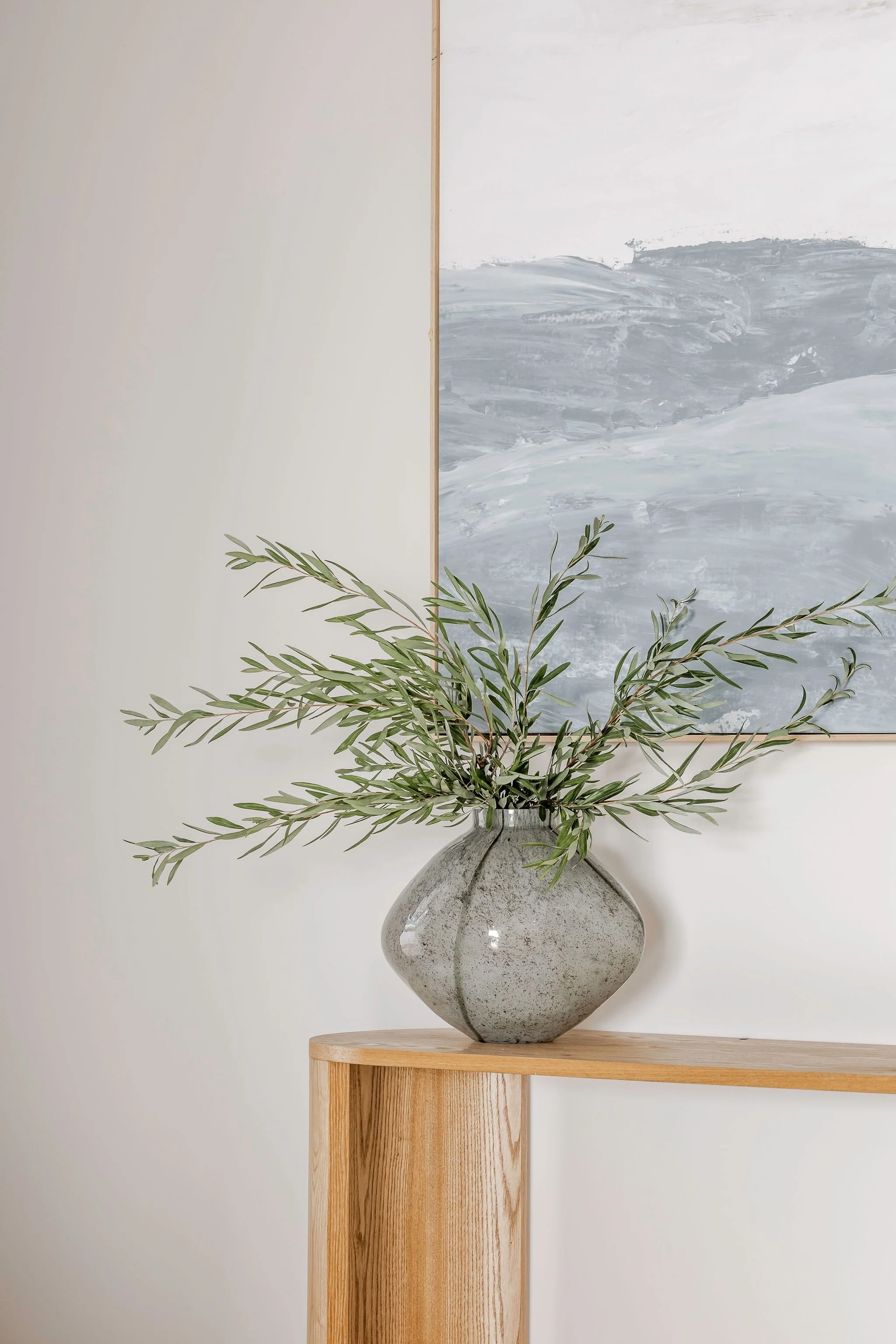 Our scope included the full interior design for the build, as well as furniture selection, styling, and artwork curation. Each element was chosen to reflect the home's peaceful setting and ocean views, enhancing the retreat-like feel throughout. Every room was designed for everyday living, with generous built-in storage to ensure functionality and flow without compromising the calm, uncluttered vibe.